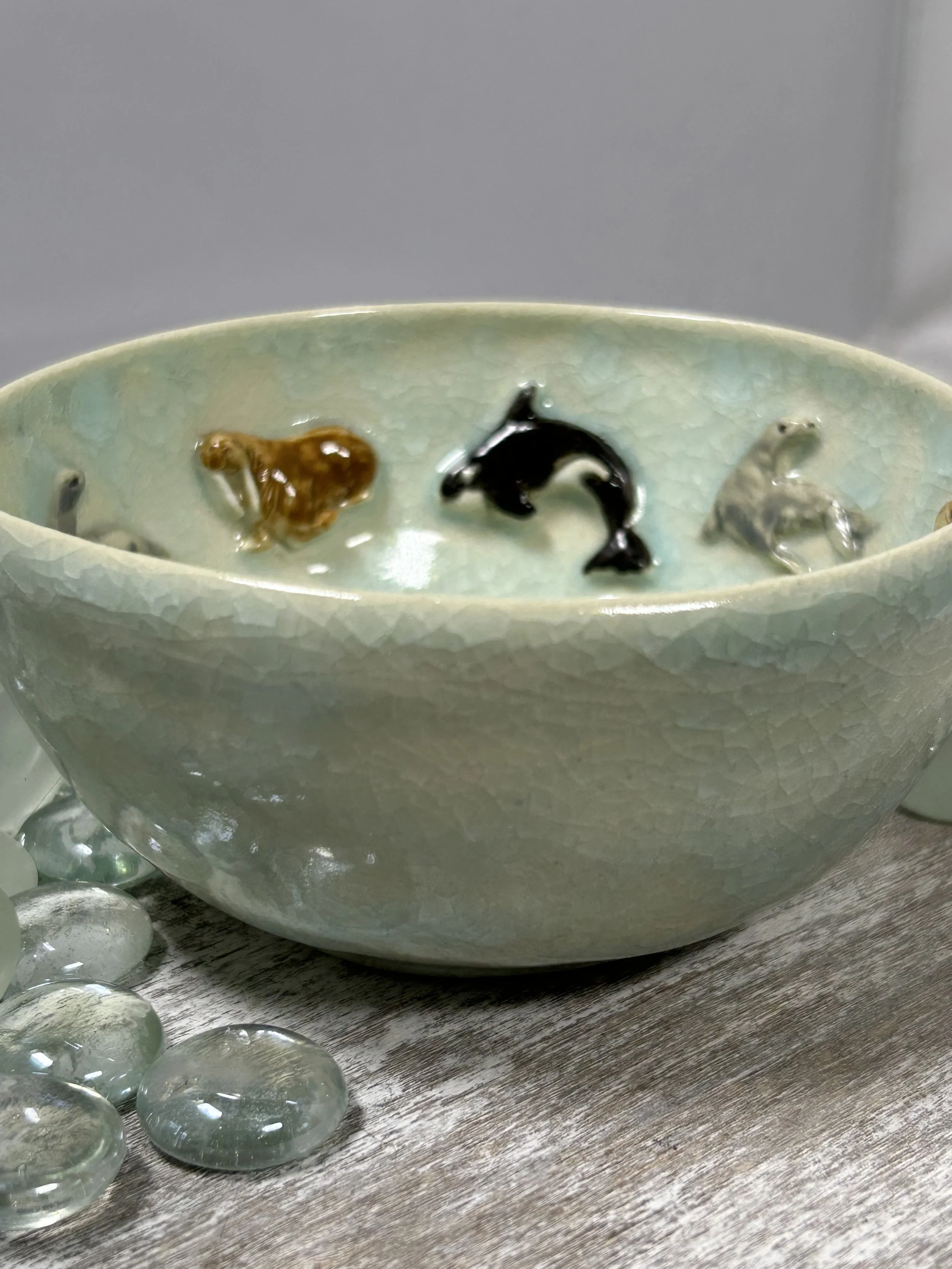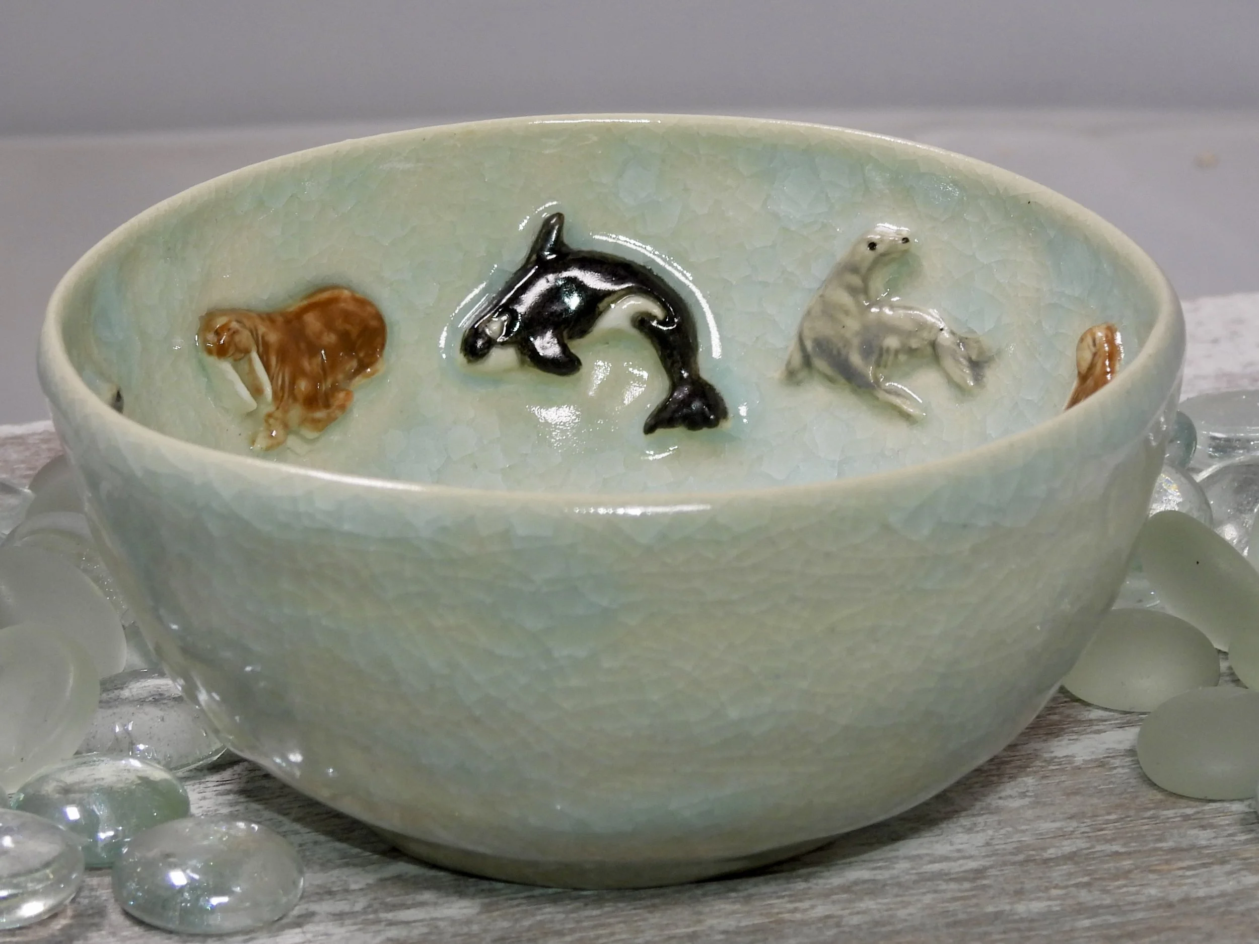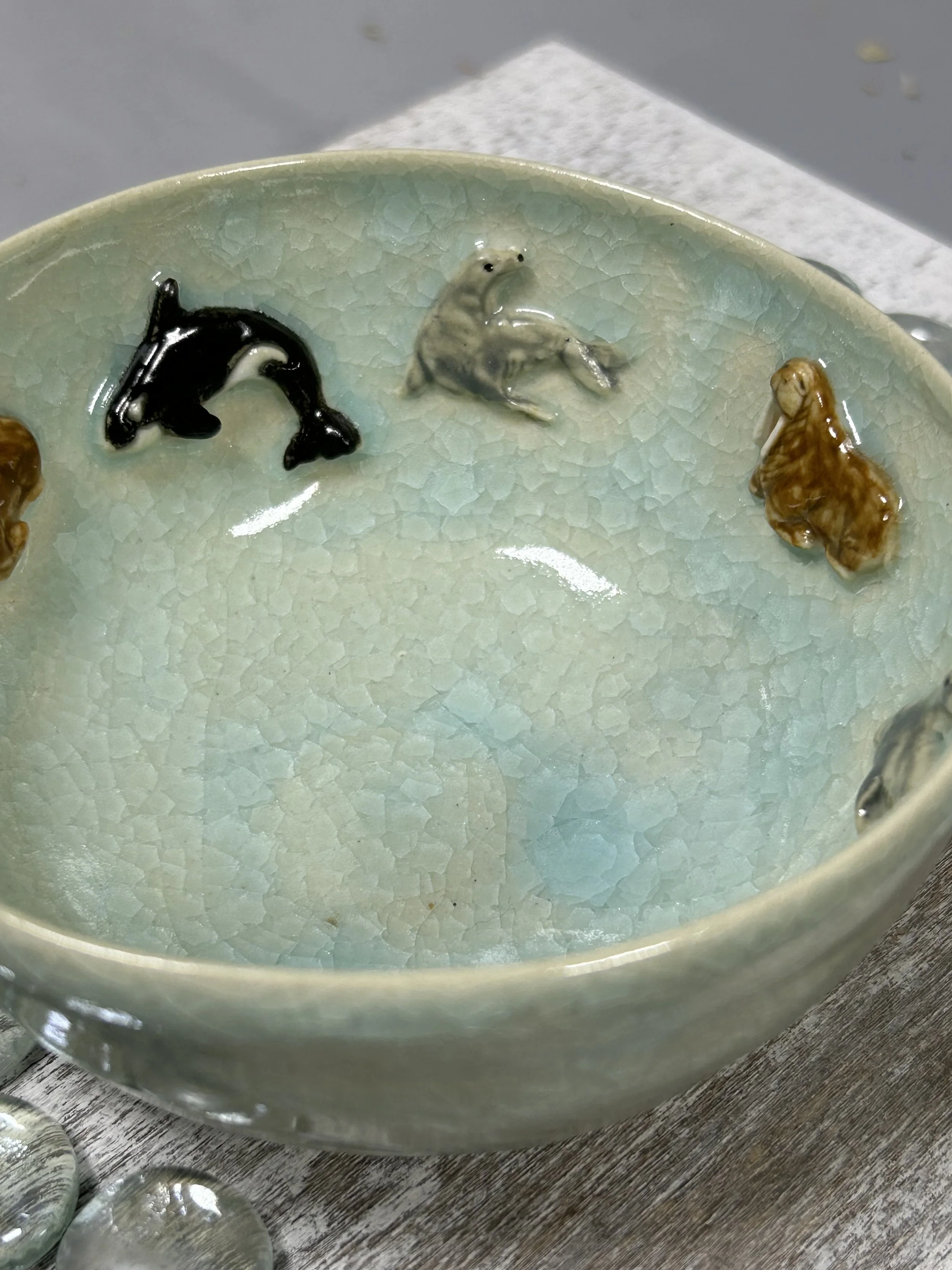 Categories: All Bowls Vases Trinket Bowls Trinket Plates Acorn Jars Mugs & Cups Bowls Arctic Sea Lions, Orcas, and Walrus Bowl $60.00 Purchase Added!